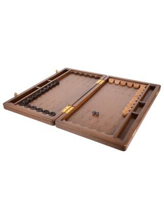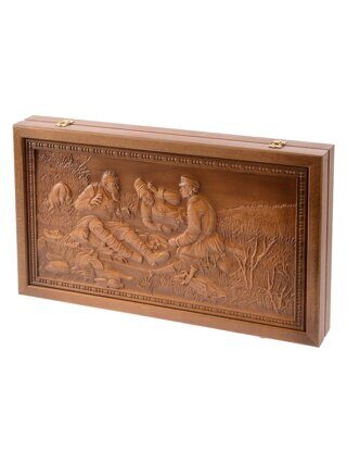 Основной материал массив северо-кавказского дуба, отделанного патиной Размеры: - в сложенном виде 50x29 см - в разложенном виде 50x58,5 см - диаметр фишки 29 мм В комплекте: - 15 светлых фишек - 15 темных фишек - 2 кубика